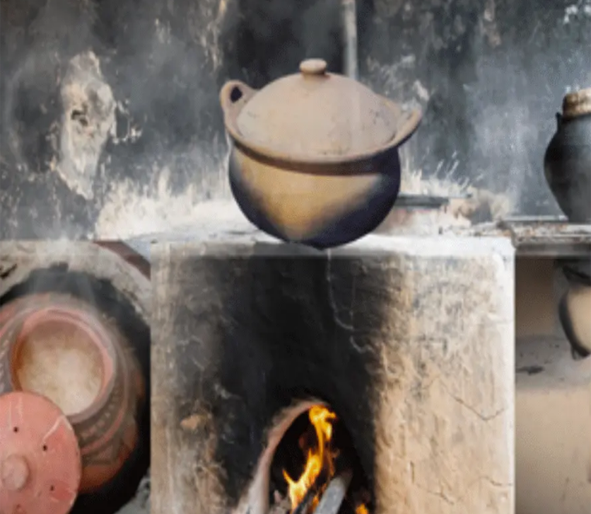 ✅ Slow cooking on a cow dung clay chulha in copper clay utensils to enhance flavor and nutrients.